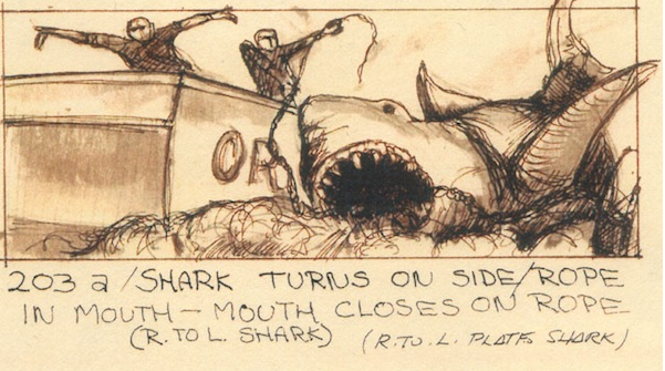 frame from 'jaws' original storyboard, by artist Joe Alves